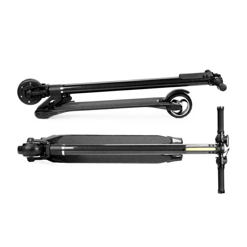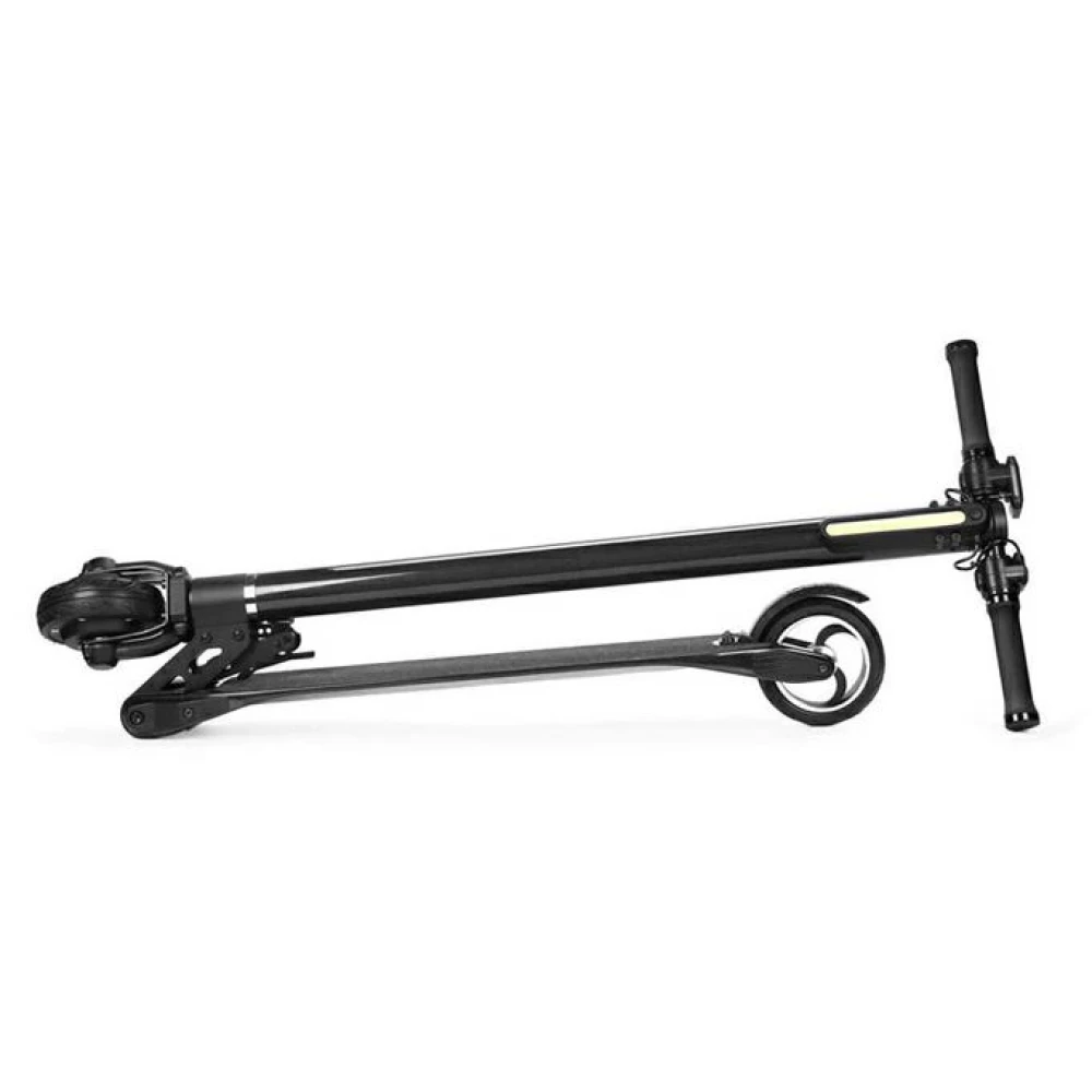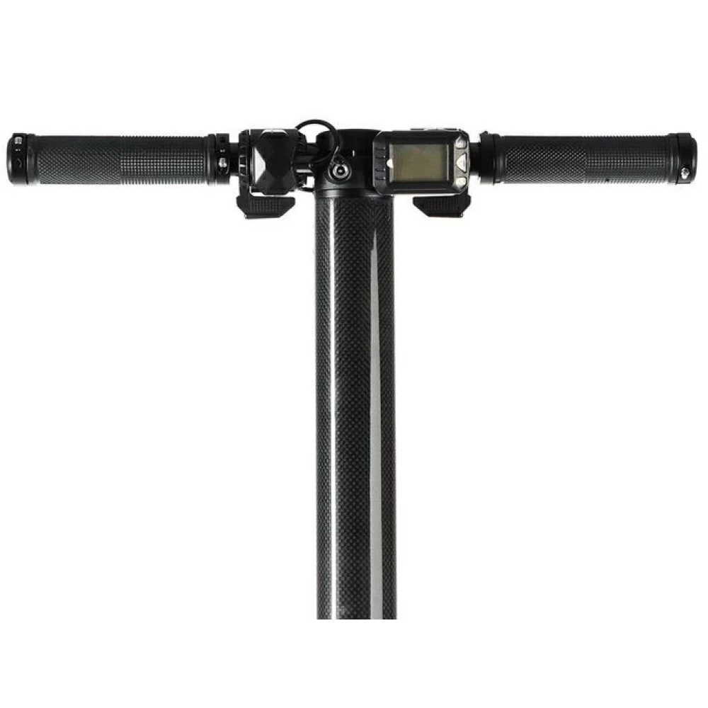 Модель изготовлена из инновационного карбона, активно использующегося в самолётостроение. Ультралегкий, прочный и надежный материал рассчитан на длительный срок службы, не деформируется при максимальных нагрузках, устойчивый к механическому воздействию. Технические характеристики представлены мощным движком в 350 Вт и емкой батареей – 8,8А*ч, которые позволяют разогнаться до максимальной скорости 25 км/час и без труда преодолеть аналогичной расстояние. Оснащенность техники жк-дисплеем, устойчивой широкой платформой и передним освещением обеспечивает безопасность езды на дальние расстояния независимо от времени суток. 5-дюймовые колеса накатистые, практически не стираемые. Многочисленные отзывы пользователей доказывают надежность и высокий класс электросамоката. По техническим характеристикам он напоминает модель из будущего.