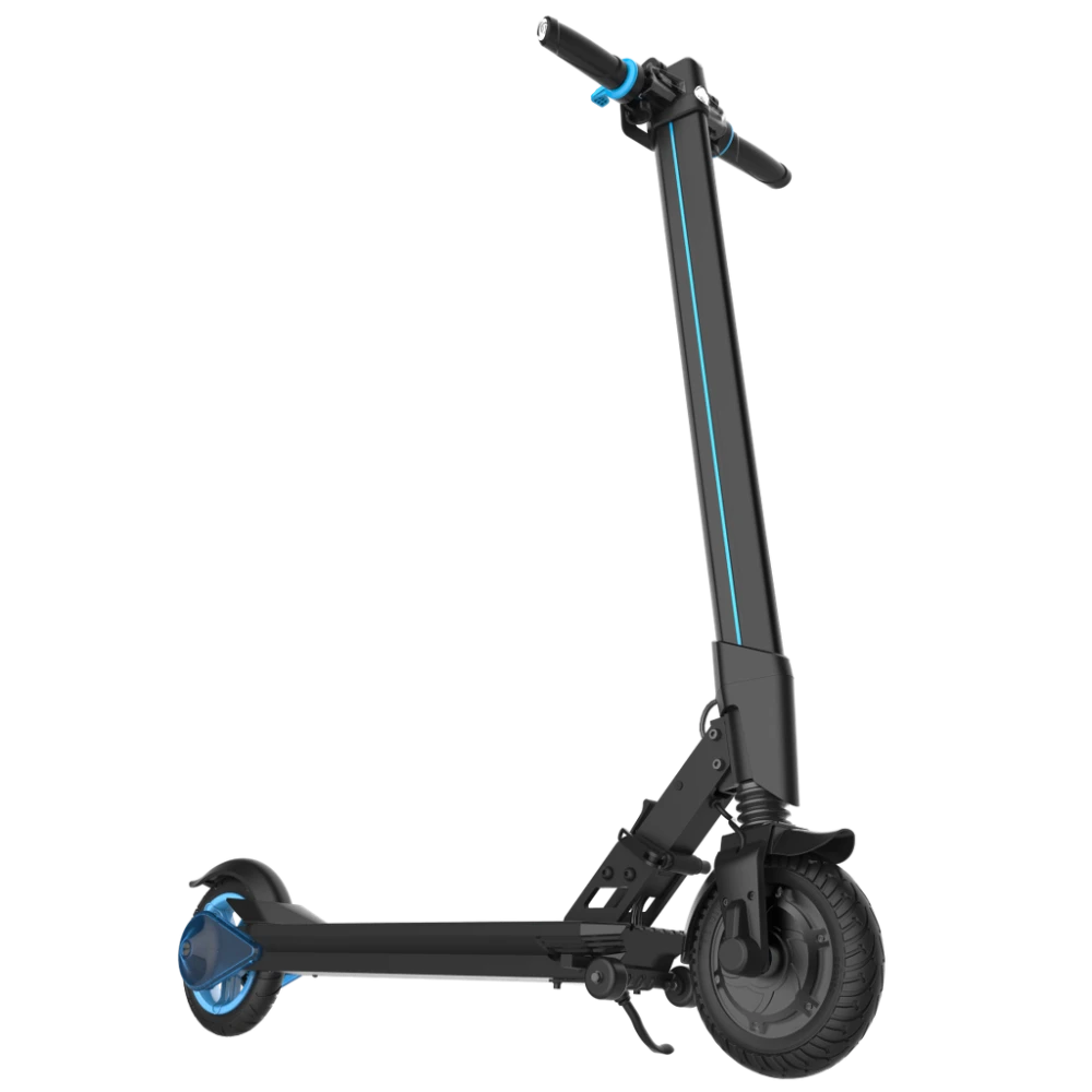 Самокат L8F – яркая, заметная модель, особенно в темноте. Все из-за практически неонового, синего оттенка подсветки, расположенной на руле и ручках. Также светится заднее колесо, добавляя футуризма во внешний вид. Чтобы ездить по вечерам было еще безопаснее, сзади сделан стоп-сигнал, а спереди – светодиодная фара.