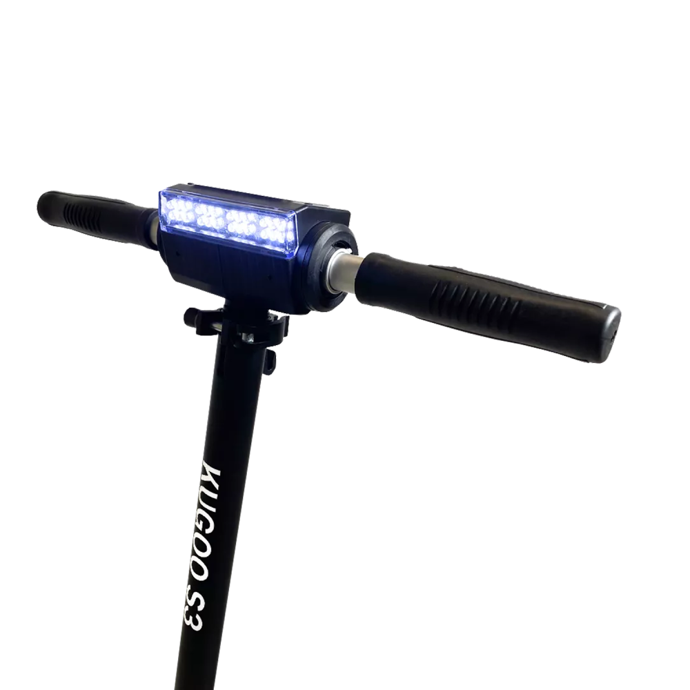 Самокат Kugoo S3 имеет запатентованную складную конструкцию, в сложенном состоянии его легко транспортировать. Его вес 11 кг позволяет переносить агрегат в руках и брать в общественный транспорт. Есть бортовой компьютер, светодиодная фара.
