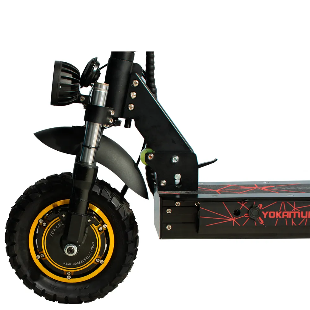 YOKAMURA RX1 оснащен мощным двигателем 1200 Вт. Такая мощность позволяет ему передвигаться по бездорожью, с легкостью покорять подъемы. Рельефная поверхность шин на 10.5 дюймовых колесах отлично этому способствует. Питание двигателя происходит от аккумулятора емкостью 21 А*ч. Напряжение 48 вольт.