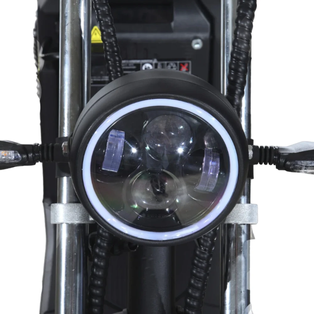 Мощность аккумулятора составляет 3950 W, емкость - 40 Ah. Внешне эта модель отличается своими внушительными размерами. Электробайк имеет массу 105 кг, выдерживает нагрузку до 200 кг. оснащен одной передней LED-фарой, зеркалами заднего вида, двойным сидением. Колеса имеют размер 12 дюймов. Для удобства водителя есть подножка. Покупателю предлагается на выбор несколько цветов (черный, синий, красный).