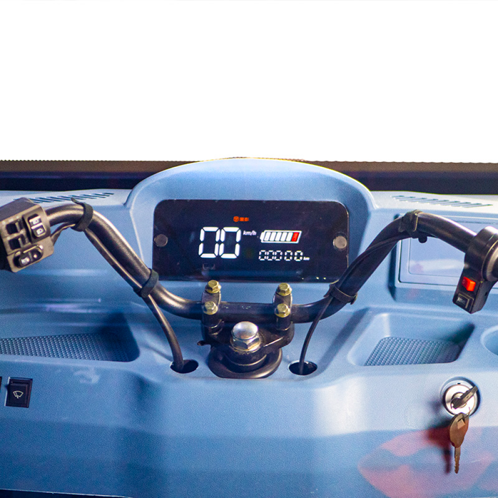 Темно-синий цвет трицикла придает ему стильный и привлекательный внешний вид. Этот цвет подчеркивает его профессиональное использование и делает его заметным на дороге.