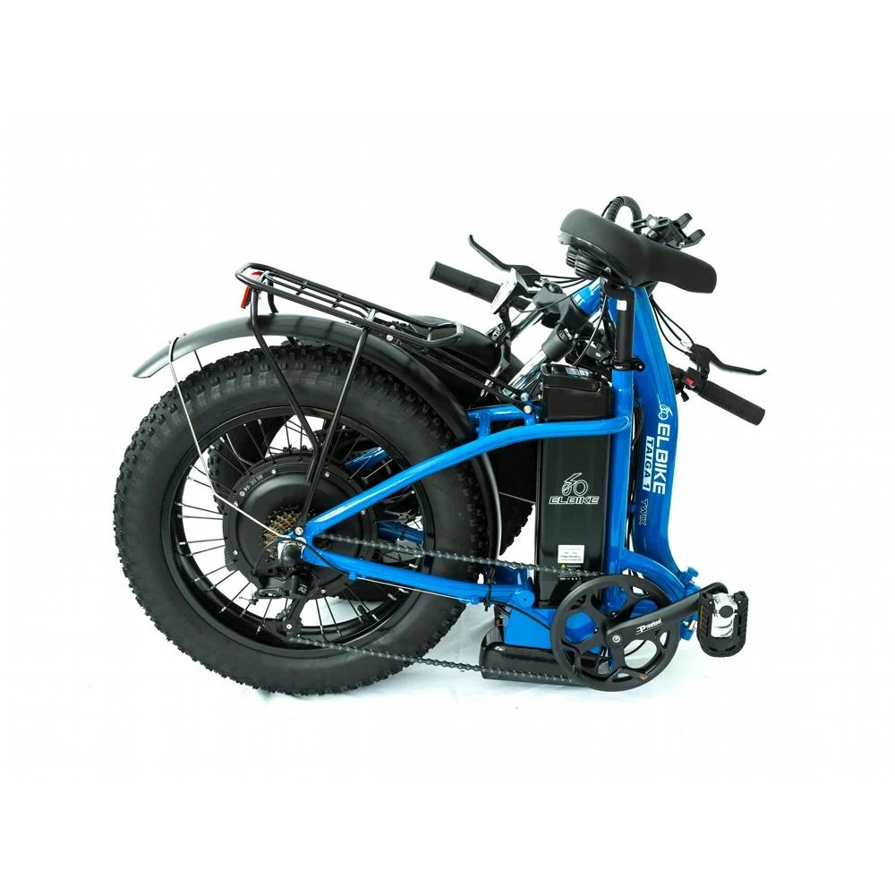 Электрофэтбайк Elbike TAIGA 1 Twix в синем цвете выглядит привлекательно и заметно на фоне другой техники. Заниженная конструкция рамы допускает эксплуатацию тс представительницами слабого пола. Купить электрофэтбайк для езды по городской местности и бездорожью предлагает наш интернет-магазин.