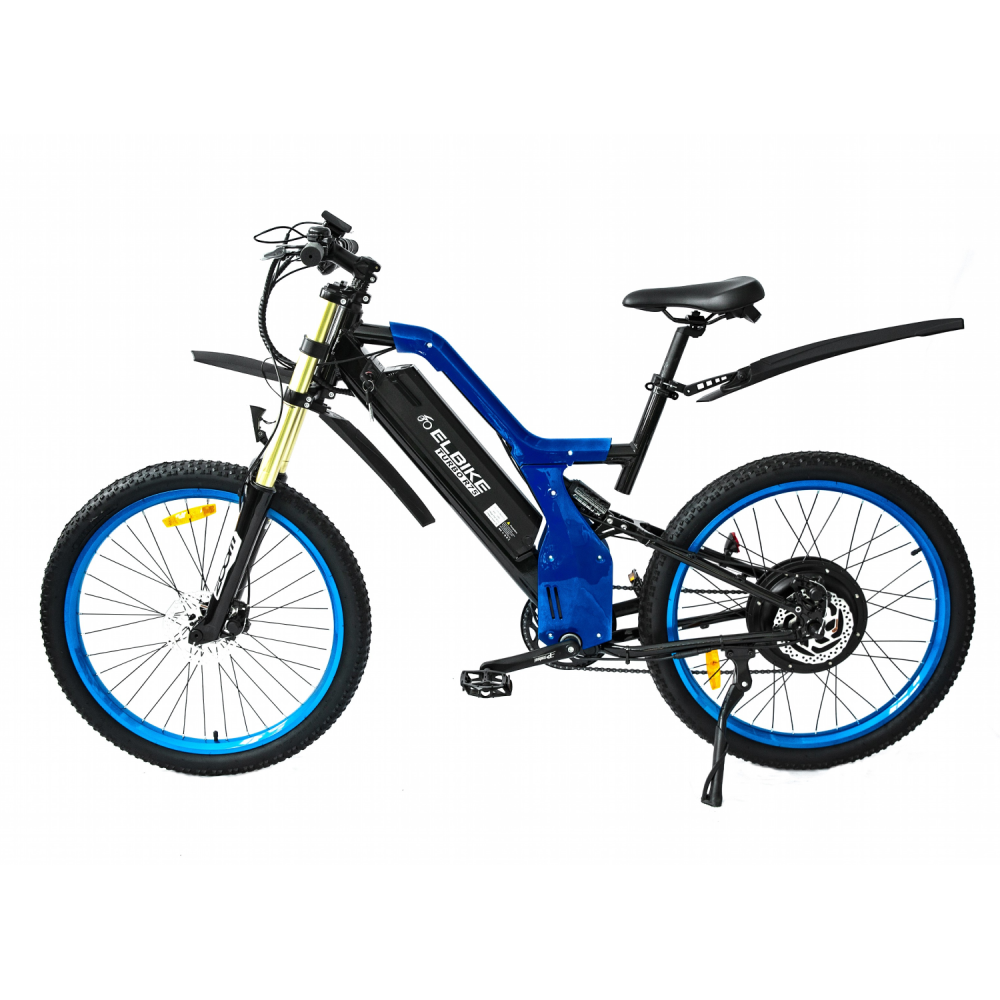 Электровелосипед Elbike TURBO R65 премиум класса представлен в благородном синем цвете. Мощный мотор 500 Вт, большой размер колёс в 26 дюймов, электровелосипед разгоняется до 40 км/ч.